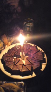 ケーキのかわりにシルベーヌというお菓子がお皿いっぱいに並べられ、パーティー用の蝋燭のかわりにお墓参り用 の蝋燭がたてられてしまいました。